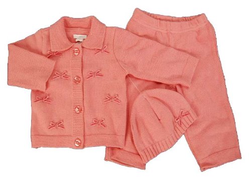 Cute baby girl's outfit with cardigan sweater and pants. Cap included.