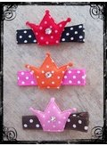Princess Crown Clippie Set Enjoy the warm season with these fun clippies! You will receive the set of 3 whimsical Princess Crown Clips. Use one to keep those wispy hairs out of her eyes, use a couple to decorate her pigtails...no matter how you use them, she's bound to look fab! Clippies are on 1 3/4 inch alligator clips and are adorned with true sparkling crystals.