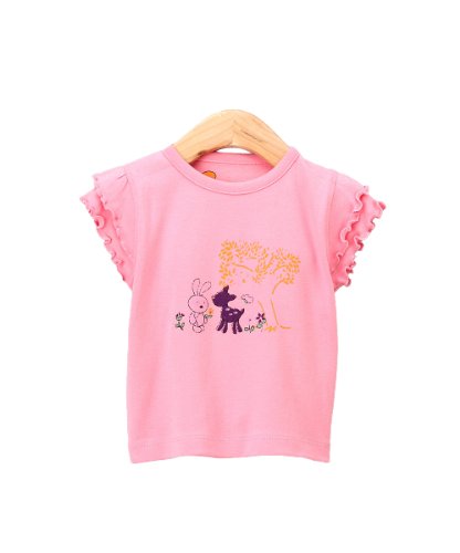 - Girls round neck T-shirt with wing-tipped sleeves and cute bunny and deer graphic